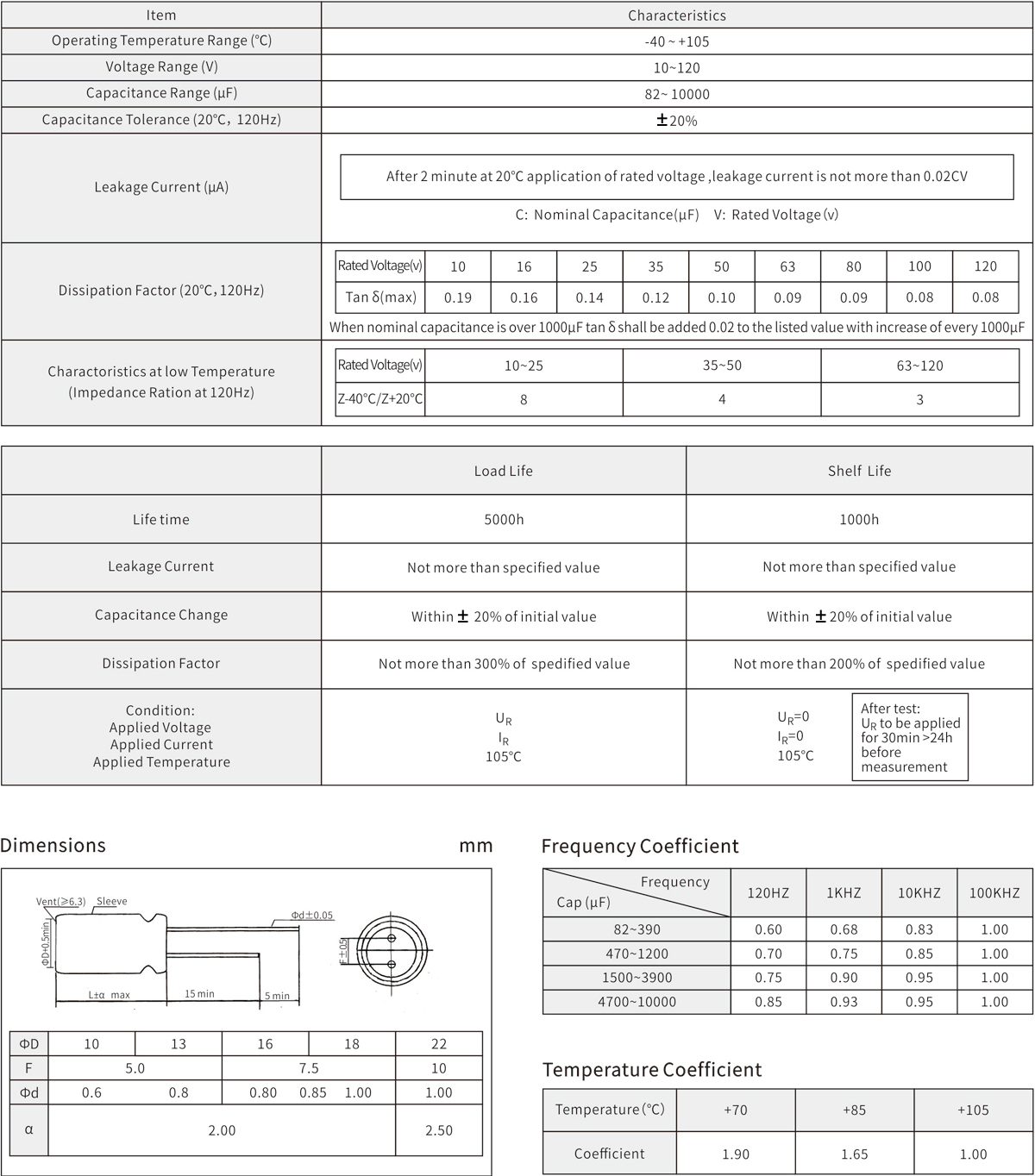 5000h at 105℃;Long life:5000 hours at 105℃;Low impedance for high freguency