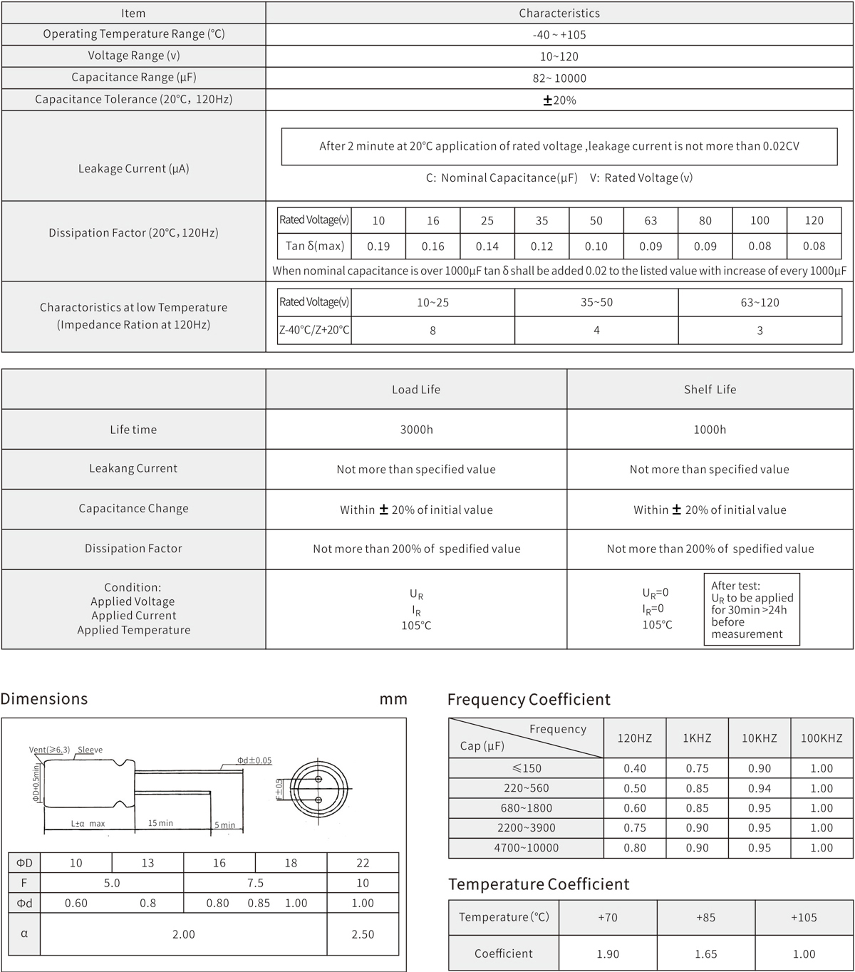 Long life:3000 hours at 105℃ Low impedance for high frequency
